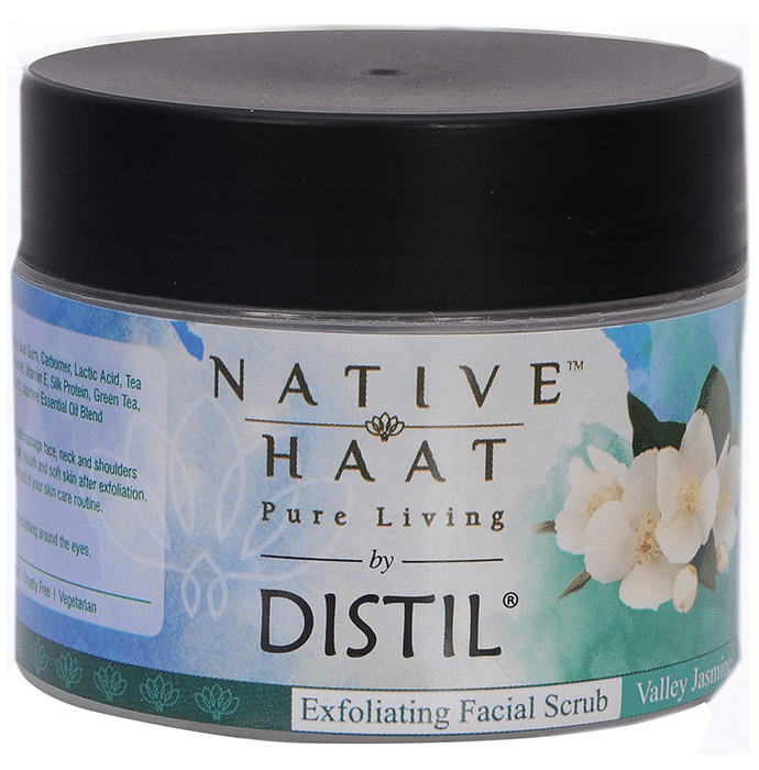 Native Haat Distil Exfoliating Facial Scrub Wild Jasmine Native Haat Distil Facial Scrub is designed to provide nourishment and moisturization to the skin. The ingredients present in the product are helpful in maintaining the natural pH balance of the skin. In addition to this, it comes in three different variants namely, Himalyan Rose, Indian Sandalwood, and Wild Jasmine.