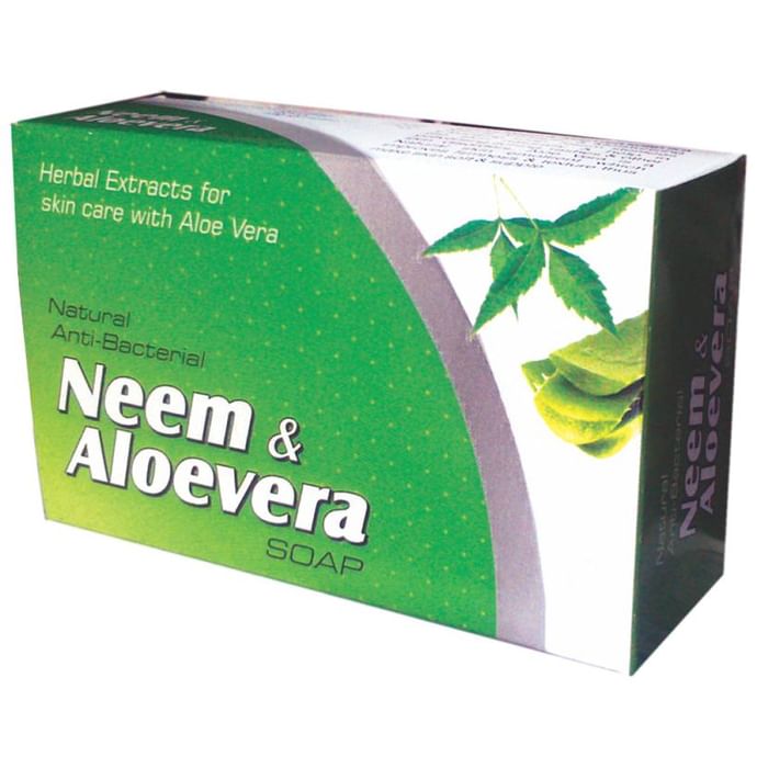 Neem and Aloe Vera soap has a rich concentration of natural herbs such as Aloe Vera and Neem extracts. The Aloe Vera has antifungal, antibacterial and anti-inflammatory properties that help in keeping the skin free of infection and microbial attacks. Neem helps in combating skin diseases. With the goodness of herbs, the soap also contains Titanium dioxide that is gentle on skin and acts as a barrier to harmful sun rays. The antibacterial soap is designed to protect the skin from harmful bacteria, prevent infections, clear skin acnes, and guard against harmful sun rays. Directions for use: Wet face and body Apply moisturizing soap generously Gently work up a lather Rinse thoroughly