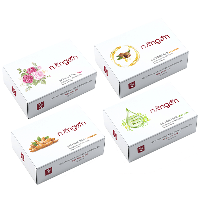 Ningen Bathing Bar (100gm Each) Buy 3 Get 1 Free Ningen Bathing Bar (100gm Each) Buy 3 Get 1 Free provides the goodness of curcumin, almond oil, vitamin E, argan oil and aloe vera. It restores the skin's moisture while brightening and lightening the skin with its unique plant-based formulations.
