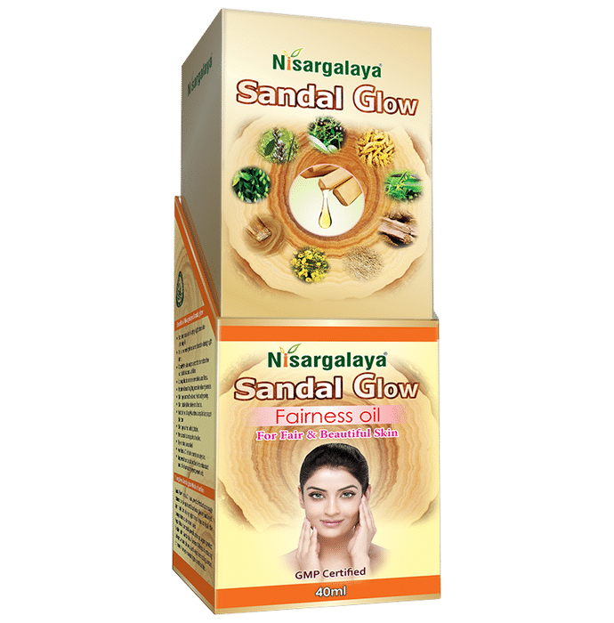 Nisargalaya Sandal Glow Fairness Oil Nisargalaya Sandal Glow Fairness Oil is an Ayurvedic product that penetrates deep into the skin and helps to remove dark spots caused due to the daylight effect. Nisargalaya sandal glow fairness oil is prepared with all Ayurvedic herbal ingredients. On application, it works with the skin to protect against daylight damage and gradually enhances the skin's natural ability to help and prevent dark spots. Besides, it makes skin fair, bright and glowing.