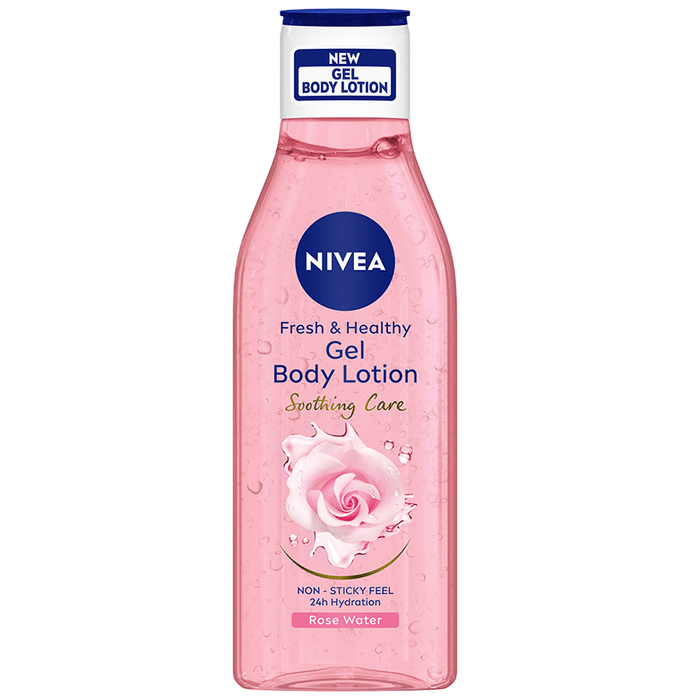 Nivea Fresh & Healthy Gel Body Lotion Soothing Care Rose Water Nivea Fresh & Healthy Gel Body Lotion Soothing Care Rose Water is beneficial for moisturising the skin. It contains rose water, which helps to refresh the skin, soothe skin irritation, and reduce redness. It also improves skin complexion and reduces skin inflammation.