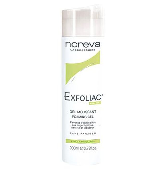 Noreva Exfoliac Foaming Gel Noreva Exfoliac Moussant Foaming Gel is rich in alpha hydroxy acid and zinc lactate that promotes the elimination of imperfections on the skin. It helps in cleaning the skin and makes the skin less prone to blemishes. It also has moisturizing agents and extra soft cleansing agents that help to hydrate and moisturize the skin. It makes the skin soft and supple.