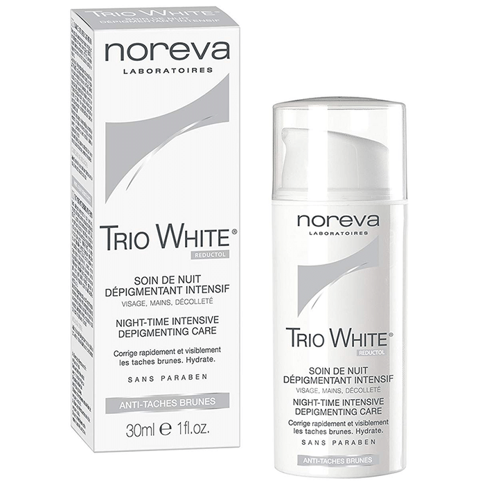 Noreva Trio White Depigmenting Night Treatment Noreva Trio White Depigmenting Night Treatment is a night depigmenting care, allowing to stop effectively and durably the production of melanin.This care effectively acts during the night, period of intense activity of the metabolism. Its effectiveness is reinforced by the action of specific active ingredients which helps in preventing appearance of brown spots in body.
