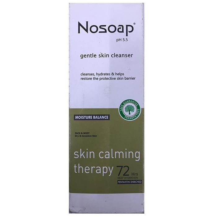 Nosoap Gentle Skin Cleanser Nosoap Gentle Skin Cleanser is a gentle, non-irritating cleanser that leaves skin feeling soft, silky, and healthy. It contains no soap. It delicately removes grime, makeup, and impurities without removing the skin's natural lipid. Nosoap has a pH of 5.5 and is an alkali-free, lanolin-free, paraben-free, fragrance-free product that is perfect for daily use on any skin type, regardless of age or gender.