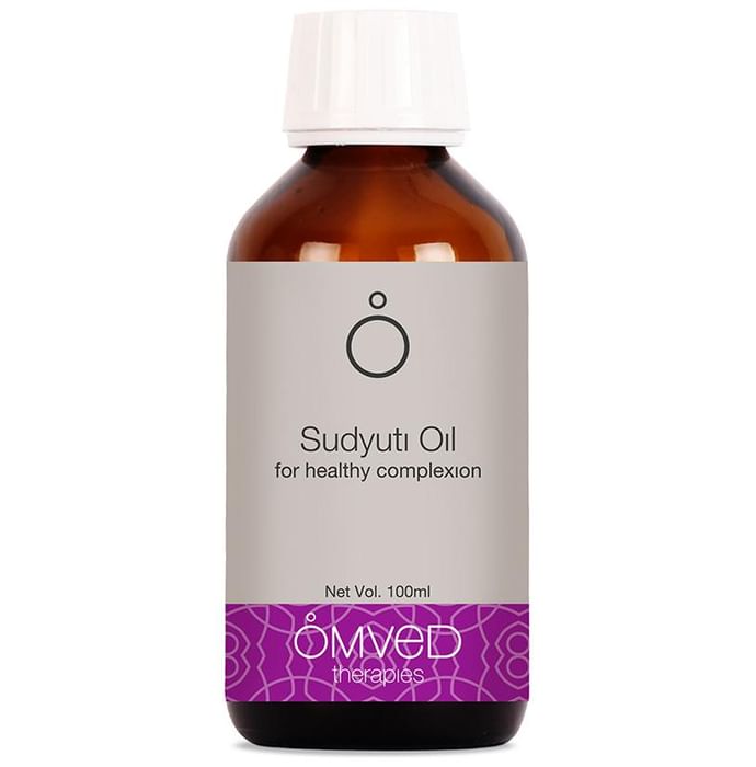 Omved Therapies Sudyuti Oil Omved Therapies Sudyuti Oil reduces intensity of skin disorders, evens your skin tone and adds a glow to your skin with the powerful blend of Sudyuti Thailam. It is a great blend effective against pigmentation and age spots. Besides, it also soothes sunburnt skin and protects from UV rays and heals wounds. This skin lightening oil has been infused with Ayurveda's secret for fairness: the four types of ficus tree bark skins (Athi, Peepal, Banyan and Udumbra), Triphala (or three healing fruits) for enhancing your complexion. It contains Saffron for restoring skin tone along with 25 other potent skin-enhancing herbs like cardamom, cinnamon, snow lotus from the Himalayas in a base of Virgin Coconut oil and Black Sesame oil.