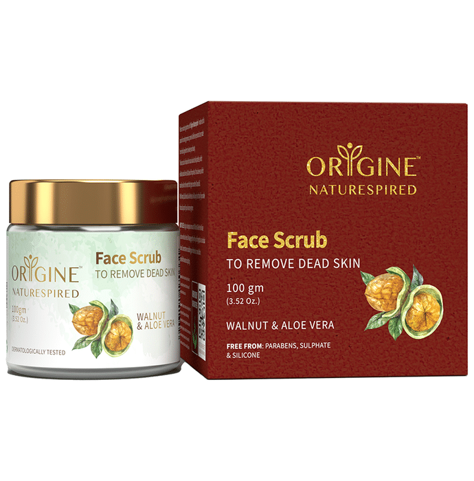Origine Naturespired Face Scrub to Remove Dead Skin helps improve blood circulation, remove impurities, dirt, and oil from pores to make your skin feel super-refreshed, clear, and softer effortlessly. It is an organic product that contains turmeric and aloe vera that help make your skin look flawlessly clean and clear. The scrub helps cleanse your skin, improve your complexion, and reduce dullness to make your face look glowy and clear. | Key Ingredients: Walnut Aloe vera Almond Turmeric | Key Benefits: It helps remove dirt and impurities from the face It helps brighten the skin reducing dullness It soothes the skin It helps control sebum production It helps nourish the skin by seeping deep within It helps prevent clogged pores and keeps them tight and clean It is dermatologically tested and clinically approved It is a natural product which is paraben-silicon-chemicals free | Direction For Use: Use as directed on the label. | Safety Information: Read the label carefully before use Do not exceed the recommended dosage Store in a cool and dry place away from direct sunlight Keep out of reach of children