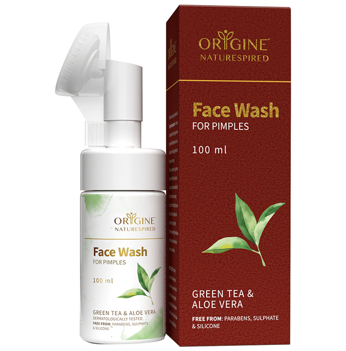 Origine Naturespired Face Wash Green Tea & Aloe Vera for Pimples Origine Naturespired Facewash for Pimples is a gentle oil-free acne facewash for regular use. Enriched with nutrients it gently nourishes the skin. It works to reduce acne and pimple concerns. It helps soften the skin, remove all impurities and is suitable enough for sensitive acne-prone skin. It soothes and moisturises by seeping into the deep layers to help with every skin concern effectively.