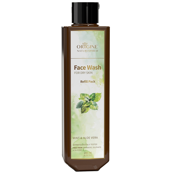 Origine Naturespired Face Wash Refill Pack for Dry Skin is the perfect face wash that makes skin hydrated, nourished, and repaired from deep layers. It relieves the skin from dryness naturally with a perfectly vegan face wash. This facewash will offer long-lasting protection for healthy glowing skin. | Key Ingredients: Mint Cucumber Orange Aloe vera Vitamin e | Key Benefits: This facewash is a one-stop natural remedy for glass-like natural glowing and clear skin This is a sulphate-free face wash, free from other harmful chemicals to make your skin clean Formulated with green tea, tea tree, aloe vera, and vitamin e to provide proper nourishment to the skin | Directions for use: Pump tiny amounts of foaming face wash all over your wet face and neck For 2 minutes, gently massage this foamy cleanser with the brush in a small circular stroke Wash off and pat dry Get spot-free, clear, and glowing skin naturally | Safety Information: Avoid direct contact with eyes If contact occurs, splash plenty of water Discontinue use if redness or inflammation occurs