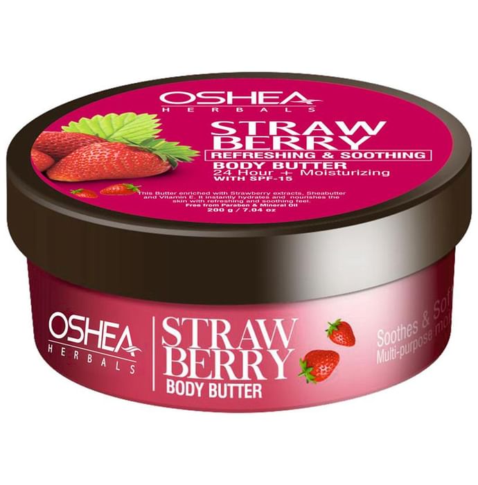 Oshea Herbals Body Butter Strawberry Oshea Herbals Body Butter is designed to moisturize and nourish the skin. The ingredients present in the product are helpful in removing dark spots and blemishes. It also contains skin softening and soothing properties. In addition to this, it comes in four different variants namely, Glopure, Strawberry, Papayaclean, and Cocoa.