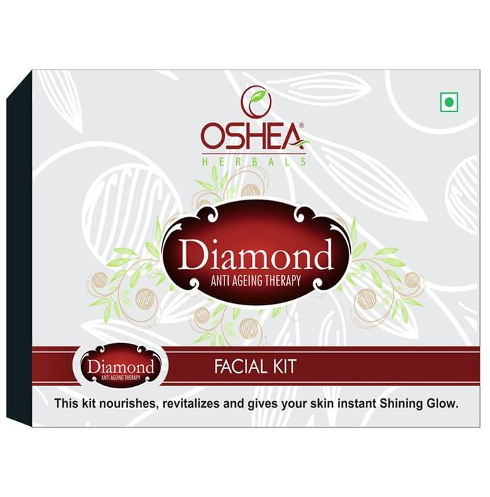 Oshea Herbals Diamond Facial Kit Oshea Herbals Facial Kit is a combination of various facial kits that all work towards rejuvenating the skin and giving it a younger appearance. It consists of six facial kit, namely Gold, Diamond, Pearl, Fruitmix, Platinum and Papaya. Each kit comes with different products that are useful in making one's skin look more radiant and youthful.