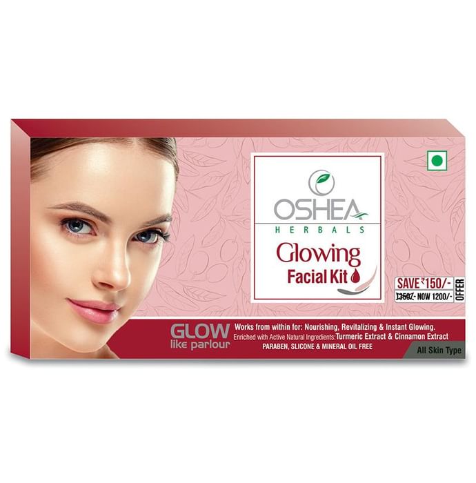 Oshea Herbals Glowing Facial Kit Oshea Herbals Facial Kit is a combination of various facial kits that all work towards rejuvenating the skin and giving it a younger appearance. It consists of six facial kit, namely Gold, Diamond, Pearl, Fruitmix, Platinum and Papaya. Each kit comes with different products that are useful in making one's skin look more radiant and youthful.