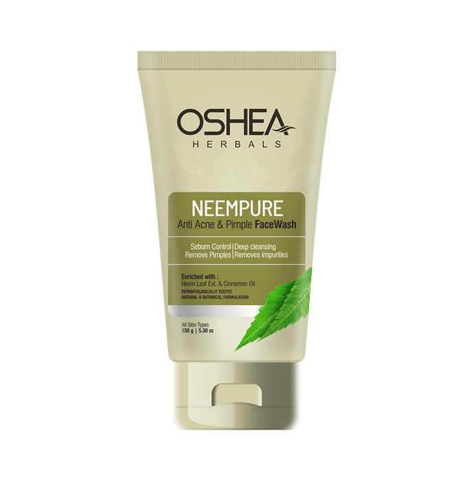 Oshea Herbals NeemPure Anti Acne & Pimple Face Wash Oshea Herbals NeemPure Anti Acne & Pimple Face Wash It is an oil control face wash formulated for oily, sensitive and acne-prone skin. It is formulated with natural ingredients that can remove excess oil and impurities from the skin. It can help control sebum and reduce acne and breakouts.