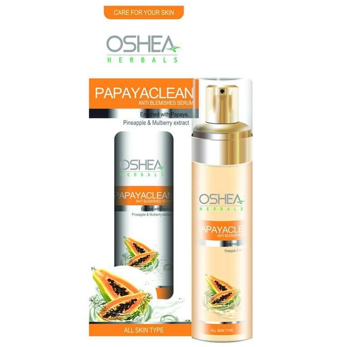 Oshea Herbals Papayaclean Serum Oshea Herbals Serum is designed to keep the skin hydrated. The ingredients present in the product are helpful in removing wrinkles and dark spots. In addition to this, it comes in four different variants namely, Almondfine, Neempure, Glopure, and Papayaclean.