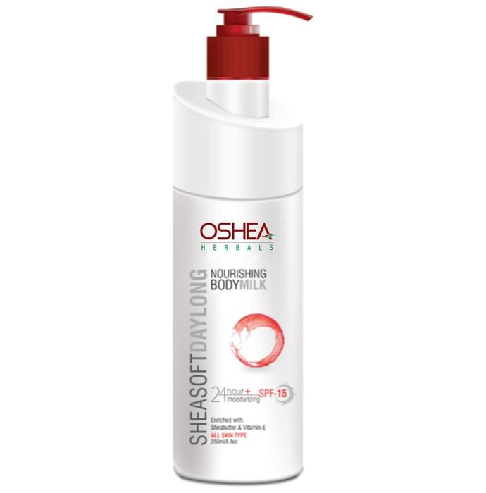 Oshea Herbals Sheasoft Nourishing Body Milk Day Long Oshea Herbals Sheasoft Nourishing Body Milk Fairness is a fast-absorbing body lotion enriched with vitamin E. It has a non-greasy formula that hydrates and lightens skin tone all day.