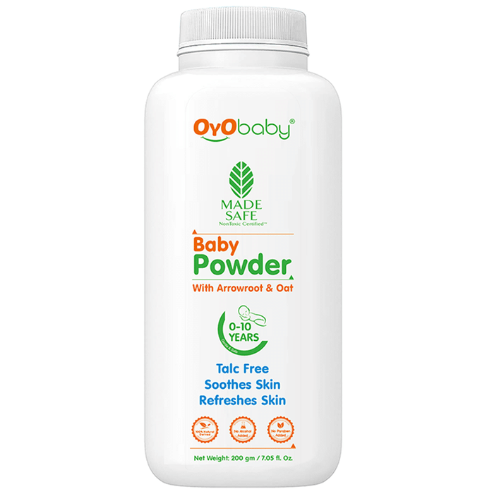 Oyo Baby Baby Powder with Arrowroot & Oat Oyo Baby Baby Powder is an incredibly soft formula that absorbs the excess moisture for smooth and baby-soft skin. It is very delicate and gentle to apply to the skin. This baby powder reduces the itching caused by diapers. It makes the skin feel fresh and comfortable. The Oyo Baby Baby powder can be used post-bath and diaper change.