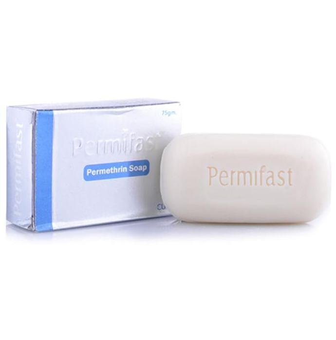 Permifast Permethrin Soap is beneficial to acne-prone skin, rosacea, eczema and people with psoriasis. It's antibacterial, so it'll clear up any rashes or breakouts. It also works well as an antifungal soap. It's also a bar that moisturises and pampers your skin. | Key Ingredients: Permethrin Glycerin benzoyl peroxide Scabies Pediculosis | Key Benefits: The moisturising properties of glycerin helps to prevent over-drying of the skin It contains neem oil which is super antifungal, antibacterial and super moisturising for the skin A humectant such as glycerin does not create a barrier but still allows your skin to breathe It cleanses off dirt and impurities from the skin's surface and deep pore levels to yield a polished and perfect complexion The soap also contains vitamin A, another essential nutrient for the skin It promotes the production of new skin cells and may help reduce dark spots, blemishes and scars It cancels out the harmful effects of UV rays on the skin and imparts an envious glow on the skin | Directions For Use: Read the label carefully before use. | Safety Information: Read the label carefully before use Store in a cool and dry place away from direct sunlight Keep out of reach of children