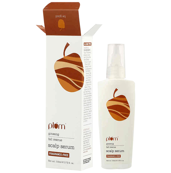 Plum Ginseng Fall Rescue Scalp Serum Fragrance Free Plum Ginseng Fall Rescue Scalp Serum The root cause of all hair problems is our roots. This scalp serum gets to the root of all problems and makes the hair healthy and alive from within. With the powerful blend of baicapil (3%), ginseng, gotu kola hibiscus, bhringraj and rose water extracts the scalp serum penetrates deep inside to promote new hair growth and prevent further damage or hair fall. The scalp serum comes with an in-built applicator that helps in easy application.