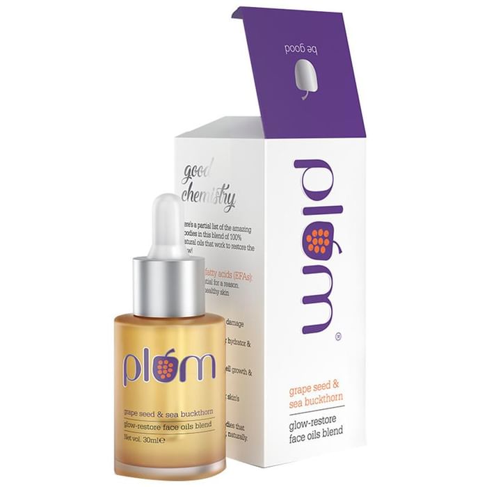 Plum Grape Seed & Sea Buckthorn Glow-Restore Face Oils Blend Plum Grape Seed & Sea Buckthorn Glow-Restore Face Oils Blend is designed to provide relief in skin dryness and restores natural health, glow to the skin. It helps to fight oxidative damage, and prevents Trans-Epidermal water loss (TEWL) from the skin. Moreover, it absorbs easily and doesn't feel sticky on the skin.