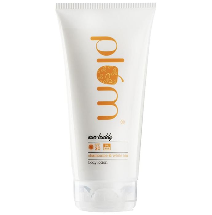 Plum Sun-Buddy Chamomile & White Tea Body Lotion SPF 30 Plum Sun Buddy Chamomile & White Tea Body Lotion provides a broad spectrum protection against UVA and UVB, thus protects the skin against damage and cancer. It provides protection so that your outdoor traveling or commute doesn't become the reason for the loss of youthful and fresh looking skin you are endowed with.