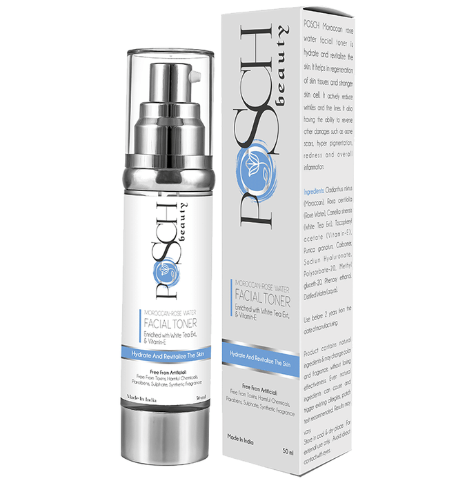 Posch Moroccan-Rose Water Facial Toner Posch Facial Toner keeps the skin hydrated and nourished using the Posch Facial Toner with Pure natural Moroccan rose water, white tea extract and vitamin E. All the ingredients used have been classified according to their potential to maximize the benefits and efficiency when on your skin.