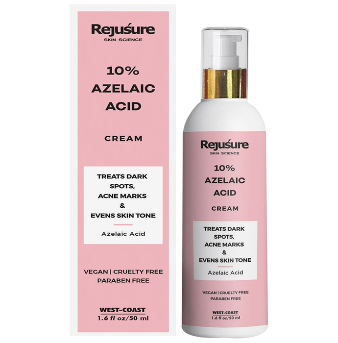 Rejusure 10% Azelaic Acid Suspension Rejusure 10% Azelaic Acid Suspension is formulated with azelaic acid, which is a form of azelaic acid that is present naturally in grains and created by the yeast that lives on normal skin. Azelaic Acid Suspension 10% by Rejusure is a multitasking wonder. This formulation is an efficient antioxidant that protects skin from free radical disruption, brightens colour, enhances texture, and reduces the occurrence of blemishes. In a lightweight cream with a 10% concentration. This substance is free of parabens, dyes, mineral oils and animal testing. It is also vegan and dermatologist tested.