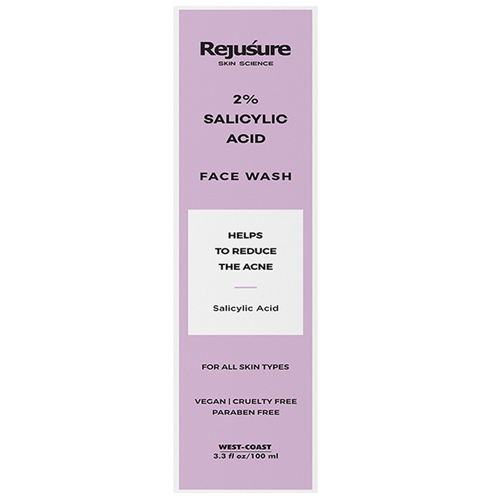 Rejusure 2% Salicylic Acid Face Wash Rejusure 2% Salicylic Acid Face Wash is formulated to help control excess sebum while also acting as an anti-irritant to soothe and protect acne-prone skin. This multi-tasking product not only removes make-up, but also manages excess oil to eliminate sebum, eliminates the occurrence of swollen pores, blackheads, and breakouts and promotes even skin tone.