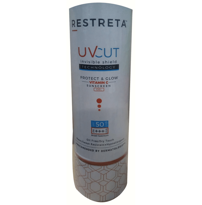 Restreta UV Cut Sunscreen Gel The Restreta UV cut Sunscreen Gel contains several ingredients with Vitamin C as active ingredients. - The gel is photostable sunscreen to provide complete broad-spectrum sun protection for sensitive skin - It has the water-resistant formula and provides sun protection even after 40 minutes of water activity - It protects the skin from harmful Infrared and ultraviolet (UVA, UVB) radiations that cause premature aging, skin burns, pigmentation, and increased risk of skin cancer Key benefits/uses of Restreta UV cut Sunscreen Gel - The active ingredient absorbs or reflects sun’s Ultraviolet radiations, thus preventing it from reaching to the deeper layers of skin. - Absorbs ultraviolet light - Protects skin from UVA rays, the rays that cause premature aging and skin cancer - The gel protects skin from harmful UVA and deeply penetrating UVB rays - Is Oil-free and water resistant Direction for use/Dosage: - Wash your face and pat it dry - Apply with clean hands an even layer - Apply it sometime before leaving in the sun. Indication: - For routine skin care, sensitive skin, sunburns, and rashes Storage instruction: - Store in a cool, dry & dark place - Protect from direct sunlight Safety information - Wash your face and apply only with clean hands - Read the label carefully before use - Do not exceed the recommended dose - Keep out of the reach and sight of children