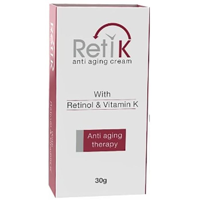 Retik Cream is a skincare supplement that can help improve the presence of collagen in the body. It aids in protecting your skin from oxidative stress that could cause wrinkles and skin damage. The supplement helps hydrate your skin, dealing with several skin conditions. | Key Ingredients: Retinol Vitamin K | Key Benefits: Retinol can be beneficial in improving the production of collagen in the body It helps assuage the visibility of wrinkles, delaying the signs of ageing The cream aids in hydrating the skin, locking the natural moisture level It can be effective in managing oxidative stress and cell damage | Directions For Use: Apply it to freshly washed face and massage the area | Safety Information: Store in a cool, dry place, away from direct sunlight Keep out of the reach and sight of children