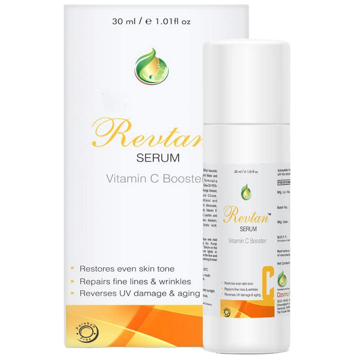 Revtan Serum has a special formulation that addresses skin issues. It decreases acne scars and blemishes, shrinks pores and improves overall skin texture. It helps to balance natural sebum levels and prevent overproduction in skincare. It is a powerful antioxidant, lowers inflammation, evens out skin tone and restores suppleness while decreasing enlarged pores. | Key Ingredients: Papaya extracts Oranhe extracts Licorice extracts Hyaluronic acid Citric acid Vitamin E Niacinamide | Key Benefits: It helps to reduce and reverse hyperpigmentation and acne spots It helps to combat dark spots and also prevents melanin production It helps to fade acne scars and further helps in soothing the skin, preventing irritation due to acne It limits the production of sebum and reduces acne symptoms It prevents collagen breakdown and encourages melanin formation to even out skin spots It also helps to soothe the skin, avoiding acne-related inflammation | Directions For Use: Read the label carefully before use. | Safety Information: Read the label carefully before use Store in a cool and dry place away from direct sunlight Keep out of reach of children