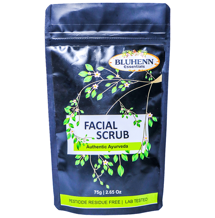 Rhuto's Bluhenn Essentials Facial Scrub Bluhenn Essentials Ayurvedic Facial Scrub is formulated with precious and rare ingredients enriched with vitamin E and D that softens the skin. It gently exfoliates the skin to help improve skin tone, promote new cell growth and soothe fine lines and other signs of ageing. | Key Ingredients: Cornflour Soy milk extract Oat Neem Rice extract Indian gooseberry Haritaki Bibhitaki Orange zest Rosemary Coconut Ascorbic acid Kaolin clay | Key Benefits: It is a facial scrub formulated with precious and rare ingredients enriched with vitamin E and D that softens the skin It gently exfoliates the skin to help improve skin tone It also promotes new cell growth and soothes fine lines and other signs of ageing Its antioxidant properties help brighten the skin, reduce pigmentation and repair damaged skin It helps to nourish the skin and remove pollutants and impurities from the skin | Directions For Use: Use as directed on the label | Safety Information: Read the product label carefully before use Store in a cool and dry place away from direct sunlight Keep out of reach of children