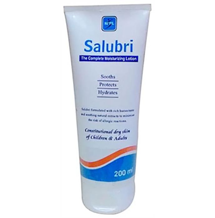 Salubri Lotion is infused with the goodness of Aloe Vera and Vitamin E which offers numerous benefits to your skin. Aloe Vera has been used traditionally for its moisturizing and healing properties and it is highly useful for people with dry, sensitive skin. It provides protection from allergies and maintains long lasting moisture to protect the skin from itchiness and irritation. Leaves the skin smooth and soft and gives it an even tone. | Key Ingredients: Vitamin E Aloe Vera | Key Benefits: Minimizes the risk of allergic skin reactions Soothes, hydrates and protects your skin Helps in giving the skin an even tone It moisturises the skin and improves texture | Directions For Use: Follow instructions found on the packaging | Safety Information: Keep out of reach of children Store at room temperature, away from direct sunlight