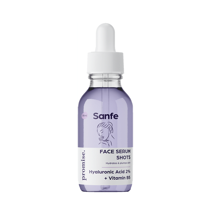Sanfe Promise Hyaluronic Acid 2% + Vitamin B5 Face Serum Shots Sanfe Promise 2% Hyaluronic Acid Face Serum Shots can help improve the overall skin tone. It moisturises the skin and makes appear youthful and radiant. It can hydrate the skin to make the skin plump and bouncy.