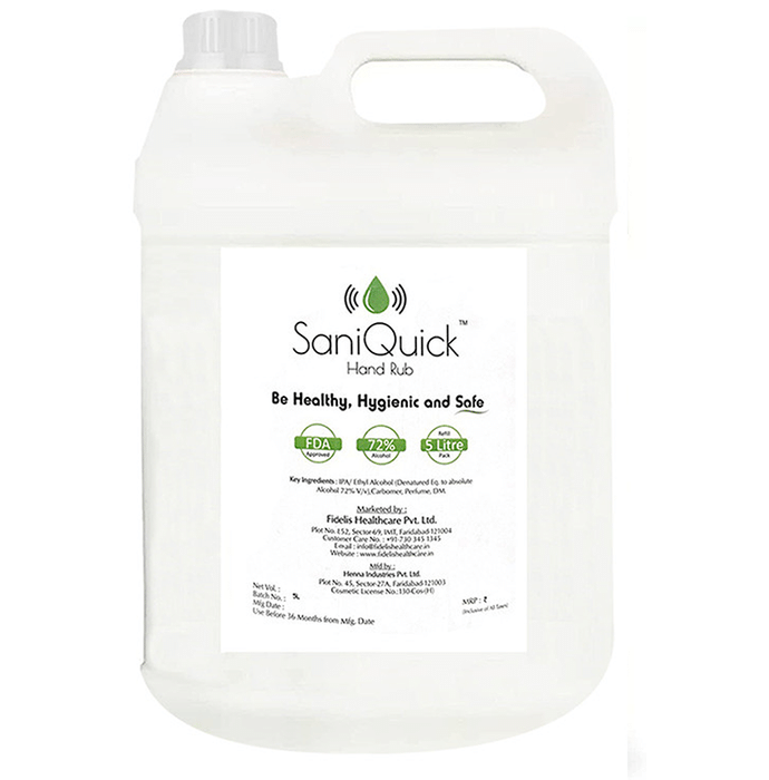 SaniQuick Hand Rub contains 72% ethyl alcohol, which kills 99.9% of disease-causing germs and bacteria. It has antibacterial and antifungal properties that protect from bacteria and viral infections. Furthermore, the hand rub protects against germs without the use of soap or water. | Key Ingredients: Ethyl alcohol | Key Benefits: SaniQuick Hand Rub helps in removing bacteria and aids in protecting against bacterial and viral infections It does not need water as the formula is self-evaporating after being rubbed on the hands and does not strip the hands of their natural moisture It does not contain any ingredient that could irritate the skin and can be used anywhere, anytime | Directions For Use: Use as directed on the label or as advised by the physician. | Safety Information: Read the label carefully before use Store in a cool and dry place away from direct sunlight Keep out of reach of children