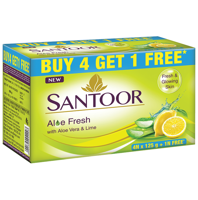 Santoor Aloe Fresh Soap 125gm (Buy 4 Get 1 Free)