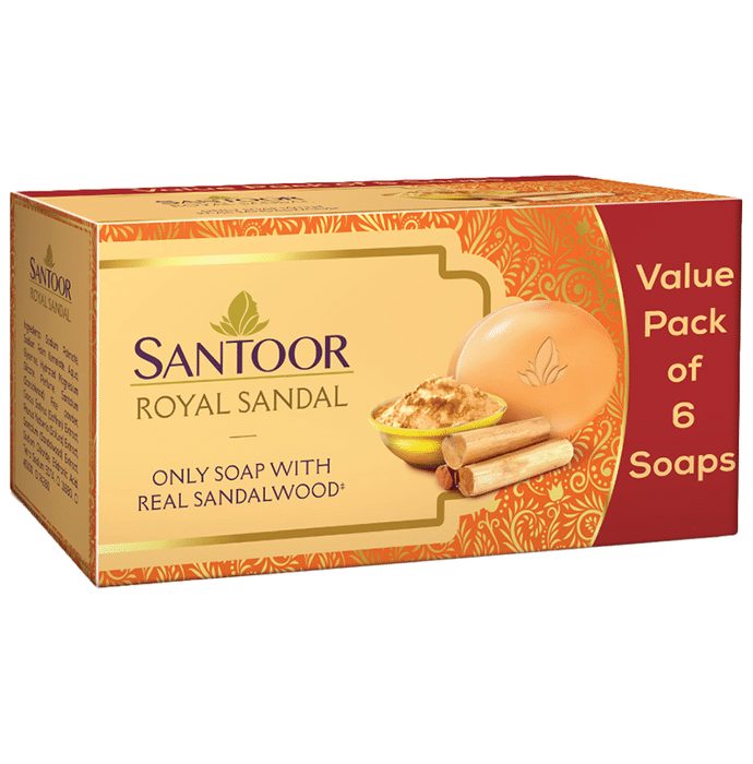 Santoor Royal Sandal Soap (125gm Each) Santoor Royal Sandal Soap (125gm Each) is beneficial to improve your skin health. It keeps your skin healthy making it glow. It has the rich fragrance of sandalwood.