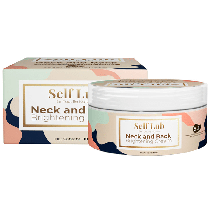 Self Lub Neck and Back Brightening Cream Self Lub Neck and Back Brightening Cream is a cream that provides hydration and moisturisation to your neck and back. It helps with lightening the skin and reversing the damage caused by the sun. It helps remove other dark spots and blemishes, and provides relief from rashes as it soothes and helps firm the skin giving it a soft and supple feel. It also helps keep the pores clean and alleviates from all the acne and irritation caused by clogged pores. It is cruelty-free, parabens-free and sulphates-free with no SLS.