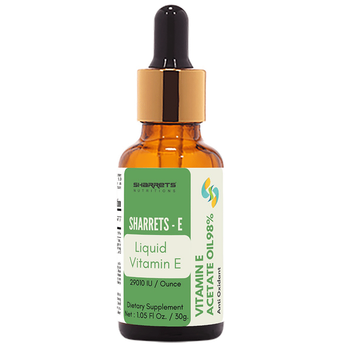 Sharrets -E 100% Pure Vitamin-E Scar Therapy Sharrets -E 100% Pure Vitamin-E Oil is a vitamin E liquid supplement for heart, face and skin. It is a clear brownish red viscous oil with mild odor and taste. Sherret is sometimes used in cosmetic application like cream, lotion and moisturizers due to its strong anti-oxidant and nourishing properties.