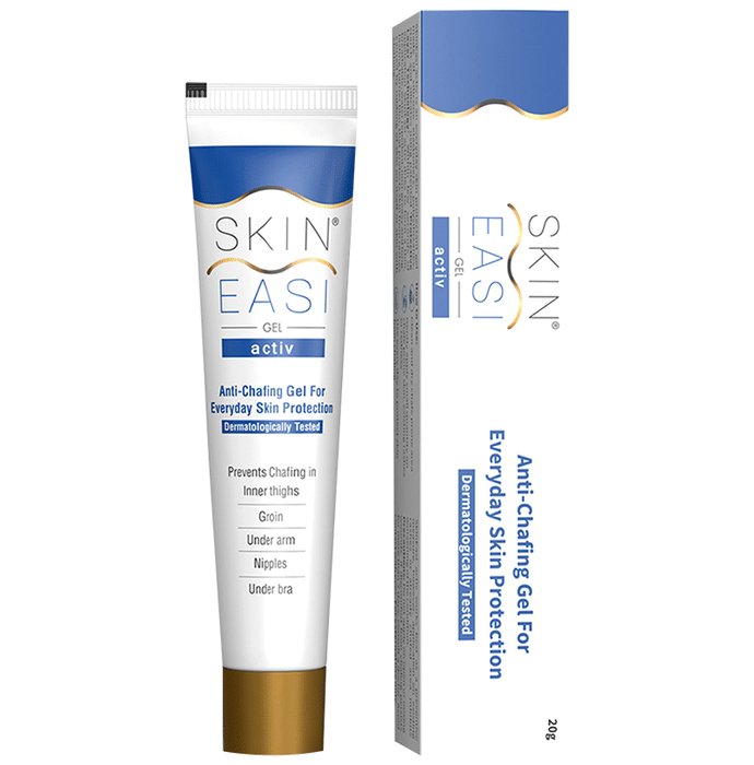 Skin Easi Activ Silicone Anti-Chafing Gel is a unique anti-chafing solution specially designed for everyday use during intense sporting activities, SkinEasi activ prevents chafing and provides immediate relief from the problems caused by chafing – the discomfort caused by the rubbing of skin on skin or skin on clothing. | Key Ingredients: Polysiloxanes Starch Silicates | Key Benefits: First time in India, patented silicone gel to prevent chafing with long-lasting protection Second-skin patented technology, forms an invisible, breathable, non-staining, non-greasy and water repellent film which protects from rash, redness, soreness due to rubbing of skin on skin, skin on clothing or prolonged use of face mask and PPE gear The barrier film reduces the friction by >80% and does not rub off easily. Hence giving long-lasting protection against friction-related skin rash and irritation Continues giving protection even in presence of sweat, rain or water Specially designed for a hot and humid climate and can be applied with your tights, underclothing and adhesive tapes Suitable for athletes, marathoners, swimmers, cyclists, cricketers, footballers, gymnasts and all sportspeople Non-medicated and free from petroleum jelly. No preservative, no perfume, no colour, no harmful chemicals. No animal origin materials are included in it Safe for daily use and is certified as non-irritant, non-sensitizing to the skin as per US FDA | Directions For Use: Before the start of any sporting activity, apply a pea-sized amount of SkinEasi activ gel on these chafing-prone spots While SkinEasi activ works best as a preventive measure, application on already chafed skin protects from worsening the condition | Safety Information: Read the label carefully before use Keep out of reach of the children Store in a cool dry place Silicones are safe for long term use and Skineasi has been tested for bio-compatibility as per US FDA guidelines Skineasi is for external application only not to be applied on the torn skin