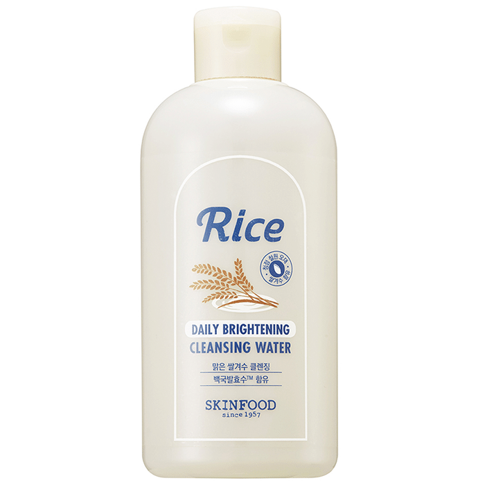 Skinfood Daily Brightening Cleansing Water is a mild cleansing water that purifies skin without leaving it feeling stripped. Using micelle technology absorbs impurities while retaining the skin's natural moisture. | Key Ingredients: Rice water Rice extract | Key Benefits: It is cleansing water from the rice cleansing skincare range It contains rice bran from Odie rice, sourced from South Korea It is a mild formula that purifies as well as brightens skin It helps in removing dirt, impurities and light makeup It helps retain natural moisture for soft and smooth skin | Directions for Use: Saturate a cotton pad with the cleansing water and gently wipe your face with it to remove makeup altogether Then rinse with lukewarm water | Safety Information: Read the label carefully before use Store in a cool and dry place, away from sunlight Keep out of reach of children