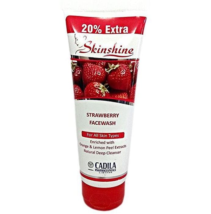 Skinshine Face Wash Strawberry Skinwash Strawberry Face wash is routine skin face wash. It contains Strawberry Fruit Extract, Orange & Lemon Peeel extract. It is specially formulated for all skin condition. The precious botanical extracts to give your skin a soft, silky glowing complexion. Improves skin texture, Rejuvenates and gives clear and fresh look. Benefits of Skinwash Strawberry Face wash: Rejuvenates Skin Brightens Dull Complexion Moisturises the skin Smoothens the skin Directions of use:- Squeeze out a small amount of Skinwash Strawberry Face wash on your palm. Apply and gently massage the lather all over face in circular motion. Rinse well and pat dry. Use it twice daily for clean, soft glowing complexion. Use under medical supervision