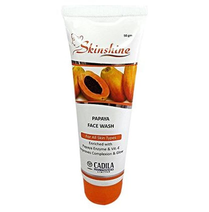 Skinshine Papaya Face Wash Skinshine Papaya Facewash is a facewash for smooth skin. It contains papaya enzyme and Vitamin E. Papaya is one of the best fruits for skin care. Papaya not only cleanses your skin but also make your skin glow. It contains rejuvenating enzymes that exfoliate your skin to provide you a glowing complexion. The enzyme papain breaks down inactive proteins and eliminates dead skin cells. Vitamin E is a powerful antioxidant which protects skin from UV damage. Also improves skin texture and aids in moisturization. Benefits of Skinshine Papaya Facewash: Good source of vitamin A, so it works as a great anti-oxidant on skin. Higher papain levels make it an excellent natural exfoliant. Helps in removing dead skin cells. Preventing premature aging and has anti-cancerous and anti-inflammatory properties. Papaya works as a great skin-firming and anti-aging agent. Direction for use: Massage papaya on your face. Let it stay there for 5 minutes and rinse your face with lukewarm water and finally with cool water. Papaya is an acidic fruit, so dont let the papaya sit on your face for more time, as it can cause dryness and might irritate your skin.Its best attribute is that it contains low sodium quantity. As the salt content is less, the water retention is also small. This leads to an overall hydrated skin. Use under medical supervision
