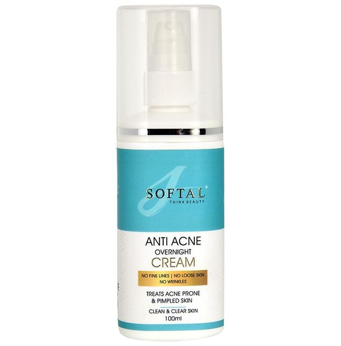 Softal Anti-Acne Overnight Cream contains Salicylic acid, a beta hydroxyl acid. It works best for mild acne (blackheads and whiteheads) by preventing future breakouts. It penetrates your skin and works to dissolve the dead skin cells clogging your pores. It can take several weeks of use for you to see its full effect. | Key Ingredients: Aloe vera Vitamin C | Key Benefits: It is vegan and cruelty-free It is made using natural ingredients It does not contain any mineral oils It is a rich and non-greasy formula It can help soften blackheads and whiteheads It can help reduce acne by exfoliating the skin and keeping pores clear It penetrates the skin and works to dissolve the dead skin cells clogging your pores | Directions For Use: Apply the cream evenly on the clean face and neck by massaging it in an upward circular motion. | Safety Instructions: For external use only, in case of irritation, discontinue use Avoid contact with the eye. At the point of contact, rinse thoroughly with water. In case of skin irritation, discontinue us. If irritation persists, seek medical advice. Read the label carefully before use Store in a cool and dry place, away from sunlight Keep out of reach of the children