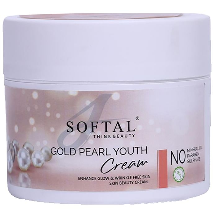 Softal Gold Pearl Youth Cream removes the layer of dust and makes the skin look fresh and healthy. It is equally beneficial for men and women. Regular use of the cream can help clear the burn and cut marks and other face acnes. In summer, due to sunlight, dust, pollution and perspiration, the skin wraps a layer of dust over the face and the neck in particular. The cream protects the face from the after-effects of the sunlight, harsh and allergic conditions following regular makeup. | Key Ingredients: Aloe vera Vitamin E | Key Benefits: It is vegan and cruelty-free It is made using natural ingredients It does not contain any mineral oils It is equally beneficial for men and women Regular use can help clear the burn and cut marks and other face acne It can help remove the dust and make the skin look fresh and healthy Rapidly and amazingly, it makes the skin soft, tender, and glowing It can help clean pimples, wrinkles, marks, hives even dark circles under the eyes It protects the face from the after-effects of the sunlight, harsh and allergic conditions following regular makeup It is enriched with vitamins that are needed for healthy hormones, a robust immune system, and the appearance of youthful skin | Directions For Use: Apply the cream evenly on the clean face and neck by massaging it in an upward circular motion. | Safety Instructions: For external use only, in case of irritation, discontinue use Avoid contact with eyes. At the point of contact, rinse thoroughly with water. In case of skin irritation, discontinue use. If irritation persists, seek medical advice. Read the label carefully before use Store in a cool and dry place, away from sunlight Keep out of reach of the children