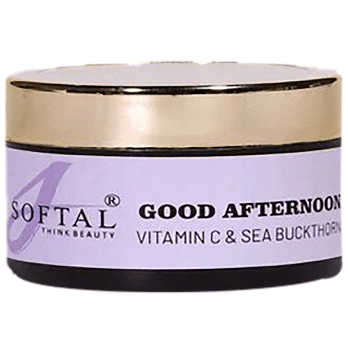 Softal Good Afternoon Cream It is a deeply nourishing sun protection cream enriched with vitamin C and sea buckthorn oil. It helps your skin maintain an optimal hydration level and protects against damage from harmful UV rays. Vitamin C helps boost collagen production and improve skin elasticity. It also helps to reduce the appearance of dark spots and tan. | Key Ingredients: Vitamin C Sea buckthorn oil | Key Benefits: It is a deeply nourishing cream with SPF 25 that helps to hydrate and revitalise your skin This SPF 25 cream protects the skin against damage from harmful UV rays It helps your skin maintain an optimal hydration level Vitamin C helps boost collagen production and also improves skin elasticity It protects your skin against sun spots, sun tan and sunburns Sea buckthorn oil has potent antioxidants that offer protection against stressors that stimulate the skin ageing | Directions For Use: Apply an adequate amount of cream to your face and gently massage it | Safety Information: Read the product label carefully before use Store in a cool and dry place away from direct sunlight Keep out of reach of children Do not use if the product appears to be tampered with or the seal is broken