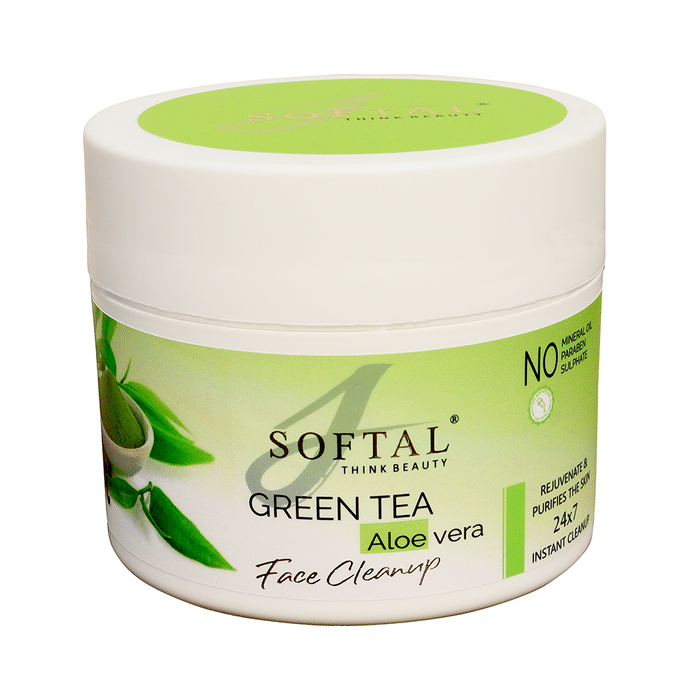 Softal Green Tea Aloe Vera Face Cleanup Softal Green Tea Aloe Vera Face Cleanup is an all in one face clean up formulated to rescue the skin from city pollution. Powered by the dual action of cleansing & nourishing, this face wash deeply purifies the skin and helps restore a healthy complexion. The heart of this face wash is Green tea, rich in antioxidants that fight free radicals.