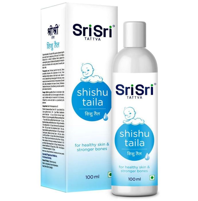 Sri Sri Tattva Shishu Taila Earlier the better'; It is easier if the practice of protecting the skin starts from the beginning of life itself. Sri Sri Ayurveda’s Shishu taila is a blend of traditional herbs prepared by restoring the essence of Traditional Ayurvedic oil making to deliver one of the best oils to suit, protect & nourish your baby’s skin.