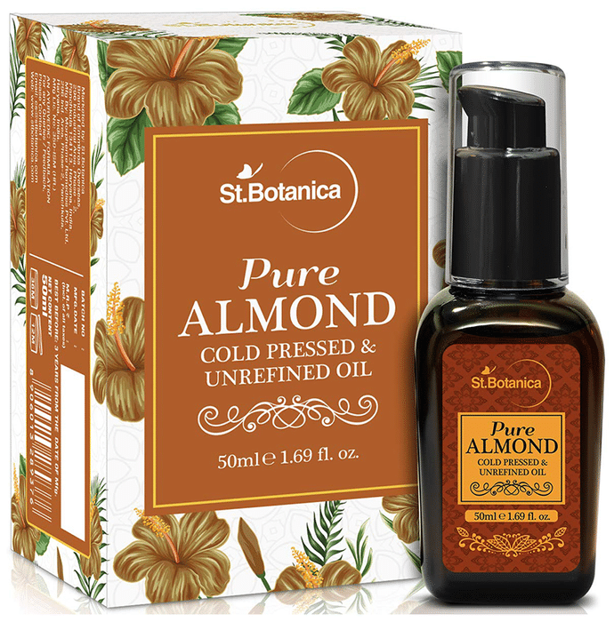 St.Botanica Almond Pure Cold Pressed Carrier Oil contains Pure Almond Oil as major ingredients. Key benefits/uses of St.Botanica Almond Pure Cold Pressed Carrier Oil: - Works wonders for your hair, scalp, face, body, and feet - Leaving the skin soft and healthy - Hydrates and nourishes skin - Sweet almond oil also relieves inflammation and irritation - Ideal for dry, damaged and sensitive skin Direction for use/Dosage: - Apply generously to your palm and gently pat and massage into the desired area to soften and smooth - Gently apply 2-3 drops on face after your cleansing routine and allow time to fully absorb before applying makeup Indication: Skin care Safety information: - Read the label carefully - Keep out of reach of children - Do not exceed the recommended dose