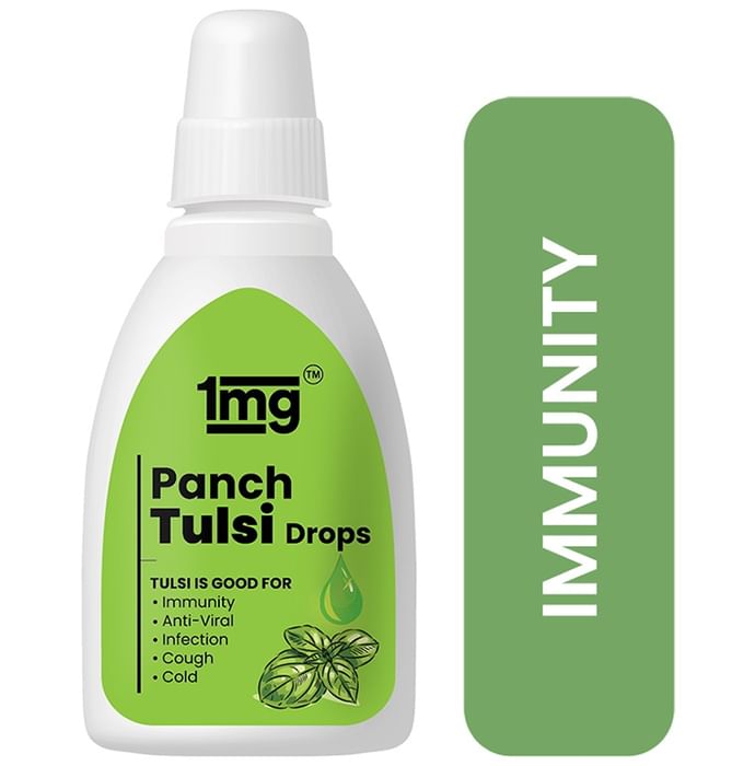 1mg Panch Tulsi Drops 1mg Panch Tulsi Drop is a natural blend of five different varieties of the holy herb. Prepared with a high-quality distillate of the whole tulsi plants, it acts as a powerful antioxidant, immunomodulator. It flushes toxins, promotes healthy metabolism and provides relief from respiratory problems.