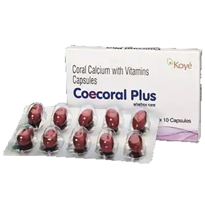 Coecoral capsule is a combination of Calcium carbonate and Vitamin D3(cholecalciferol) which is used as bone joint supplement. Calcium carbonate is a mineral that is required for the formation of bones and maintaining them. Calcium carbonate is required to prevent breakage of bones. Calcium is used to prevent or treat low blood calcium levels in people who do not get enough calcium from their diets. Vitamin D3(cholecalciferol) that is used in the absorption of calcium in the blood. Vitamin D3 helps in processing of essential minerals in the body like Calcium and Phosphorus. Lack of Vitamin D3 results in bone weakening, bone pain, and skin diseases. Coecoral is a nutritional supplement which can be taken by people who have low levels of calcium in their blood. Coecoral is used in elderly people to keep bones healthy and strong, and is even effective in Chronic arthritis and Osteoporosis. Use under medical supervision.