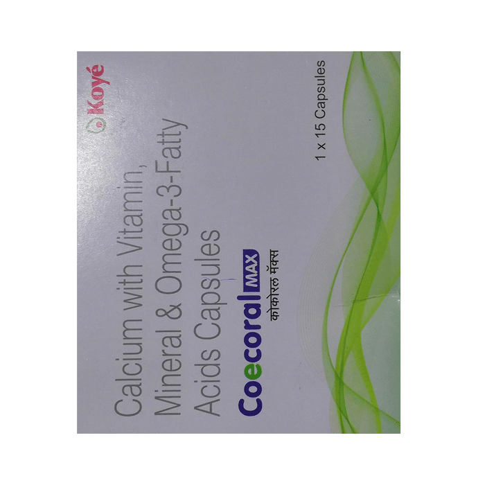 Coecoral Max Capsule Coecoral Max capsule contains Calcium,Vitamin D(calcitriol),Folic acid,Methylcobalamin(Vitamin B12)Docosahexaenoic acid,Eicosapentaenoic acid and Elemental Boron.